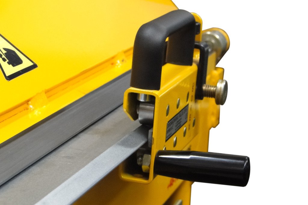 Догибающая машинка обладает небольшими размерами. Изделие устанавливается в качестве дополнительной оснастки на гибочные станки и выполняет финишные работы. Наличие двух рукояток позволяет прикладывать необходимое усилие для работы с металлом.