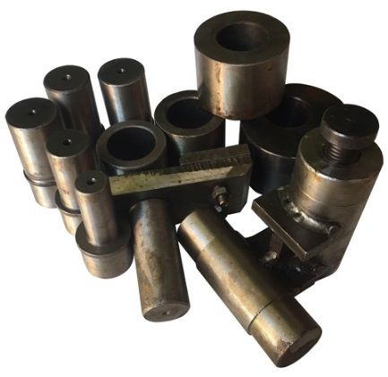 Комплект оснастки к станку гибки арматуры GW: ролики, втулки, упор регулируемый, с помощью данных предметов гнутся арматурные прутья под разными углами, в зависимости от проекта. Все комплектующие оснастки изготовлены из стали, но со временем, из-за сильного воздействия при гибки арматуры, ломаются и теряют свою правильную форму, поэтому оснастка к гибочным станкам является расходником.