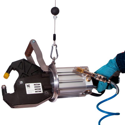 Муфта быстро разъёмного соединения для подачи сжатого воздуха предусмотрена таким образом, чтобы ручной пресс можно было вращать в процессе работы вокруг своей оси. Благодаря этому инструмент не нужно возвращать в исходное положение для предотвращения скручивания шланга подачи сжатого воздуха. Использование поворотного кольца значительно упрощает работу оператора пуклёвочного инструмента.