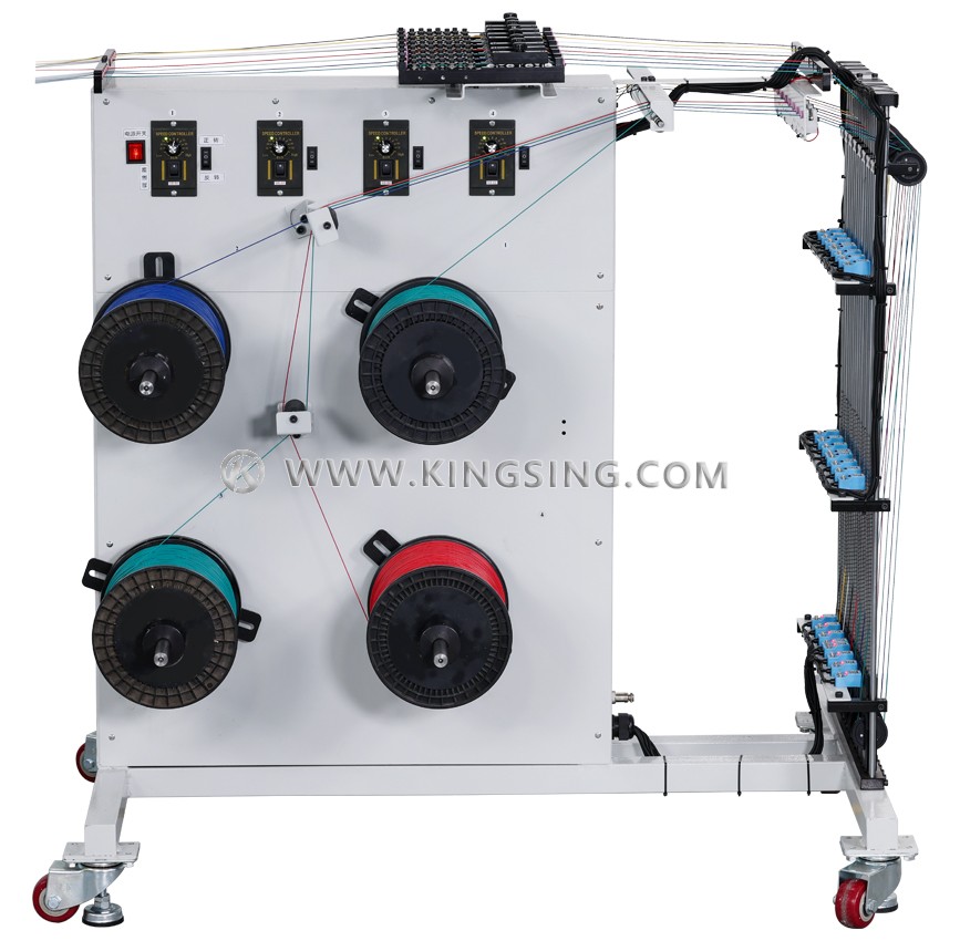 Устройство предварительной подачи катушек с проволокой на восемь станций KS-W2258S аккуратно и непрерывно подает проволоку в активное хранилище проволоки, в то время как прием полностью автоматической машины для обработки жгутов вынимает проволоку из хранилища для дальнейшей обработки, проволока направляется под постоянное напряжение для беспроблемного кормления. Он оснащен 8 катушками подачи проволоки, которые приводятся в движение 8 независимыми двигателями, каждая из 8 катушек может работать индивидуально, скорость и направление вращения каждого двигателя можно свободно регулировать. Для этой машины можно использовать как свободную проволоку, так и катушечную проволоку. Благодаря этому устройству предварительной подачи проволоки можно работать на полностью автоматических машинах для обработки жгутов проводов на высокой скорости, не беспокоясь о производительности подачи.