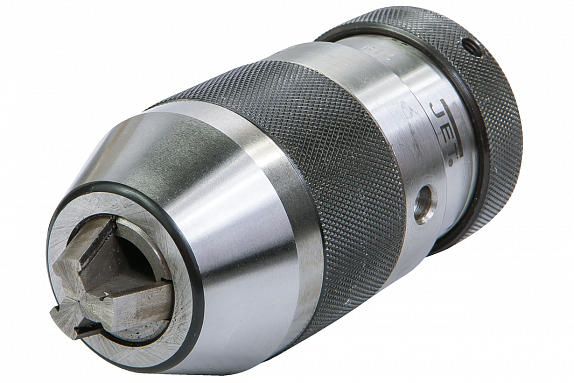 Быстрозажимной патрон представляет собой один из основных элементов сменной оснастки, применяемой для выполнения сверлильных работа на станочном оборудовании, выпускаемым компанией JET. Приспособление рассчитано для быстрой надежной и жесткой фиксации режущих инструментов, сверл с цилиндрической хвостовой частью. В оснастку устанавливаются инструменты и сверла диаметром в диапазоне 3-16 мм, обеспечивающие высокую точность обработки. Оснастка имеет зажимной механизм и посадку на конус В16, используемый в шпинделе станков. В процессе эксплуатации патрона допускается радиальное биение 0,35 мм.
