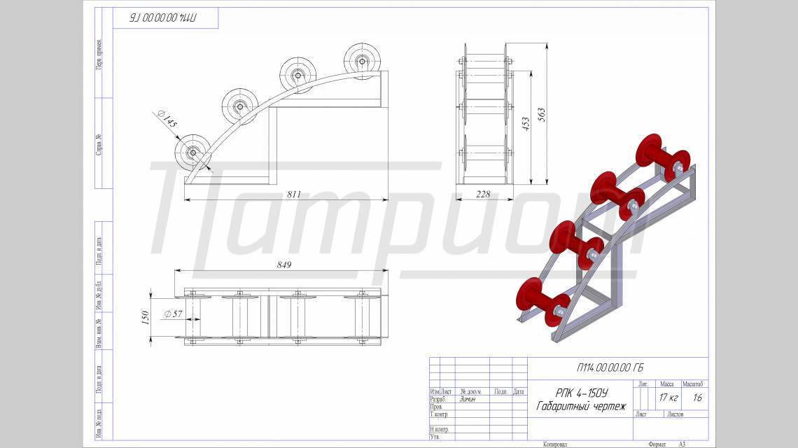Поворотные кабельные ролики РПК 4-150У применяется при прокладке кабеля диаметром до 120 мм в траншее на углах поворота кабельной трассы.