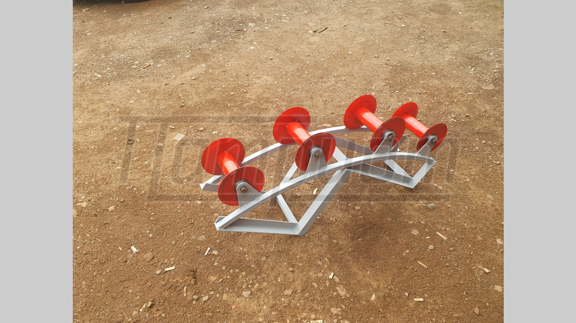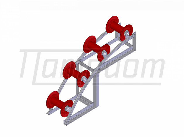 Рама ролика выполнена из профильной трубы и уголка, стальные валики с ограничительными щёками установлены на мощных шариковых подшипниках, обеспечивающих надёжную бесперебойную работу под нагрузкой в течение всего срока эксплуатации.
