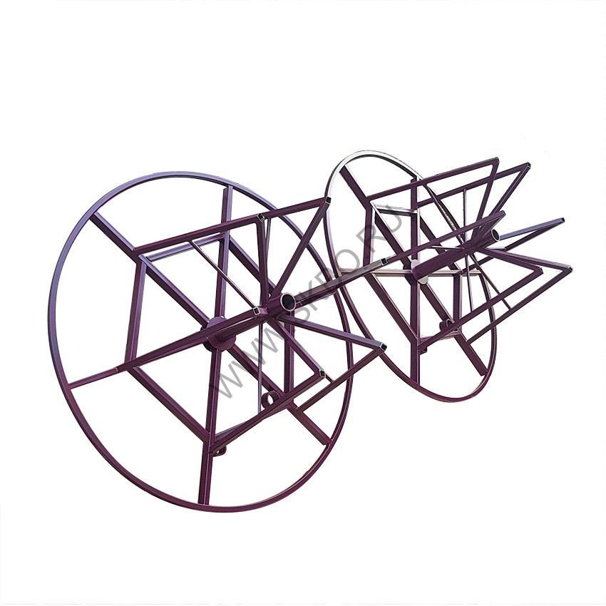 Конструктивно разборный технологический барабан представляет собой две рамы в форме усечённого конуса. Рамы собираются на оси перемоточного устройства и крепятся прижимными башмаками. Затем ось устанавливается в ложементы намоточного станка и производится намотка кабеля, провода или троса.