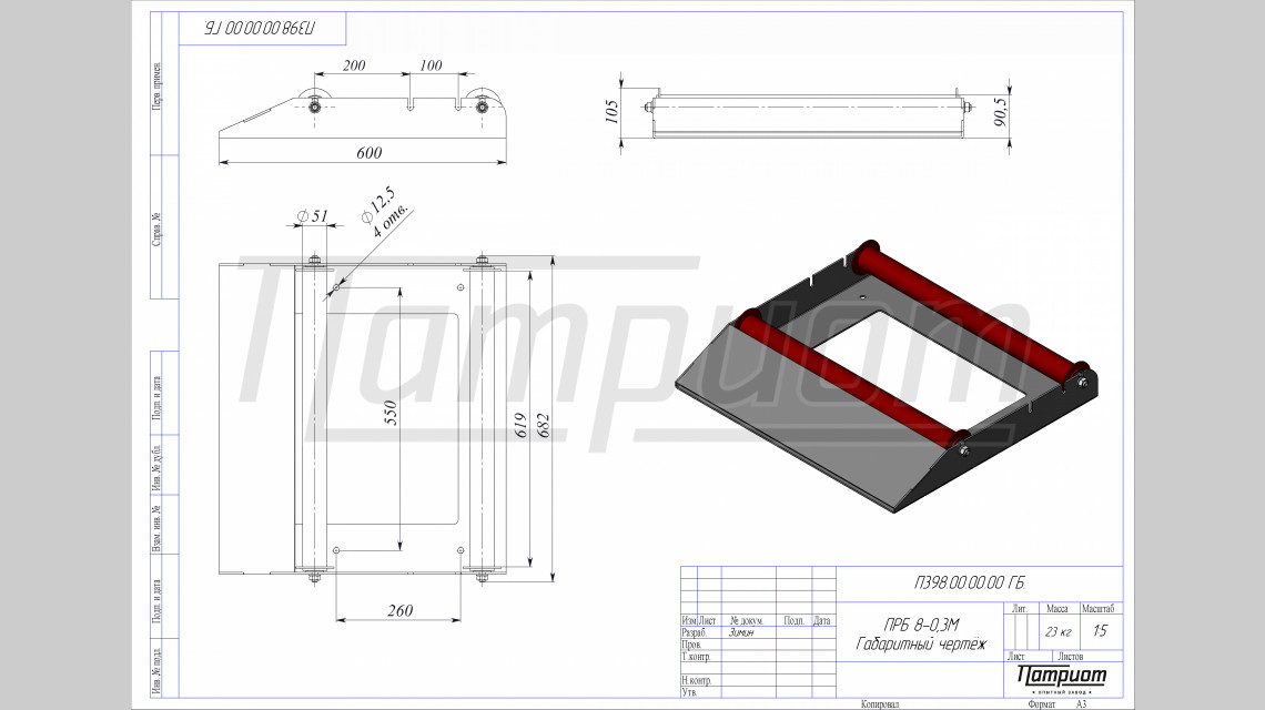 Устройство платформы для размотки катушек ПРБ 8-0,3М Патриот надёжно и удобно в использовании - для размотки катушки следует просто установить её на вращающиеся ролики.