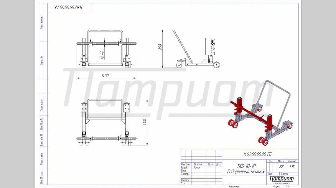 Тележка ТКБ 10-1Р - мобильное грузоподъёмное устройство, предназначенное для перемещения кабельных барабанов по территории склада.