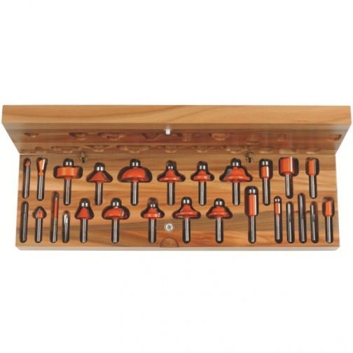 Комплект фрез концевых (26 шт; хвостовик 8 мм; RH) CMT 900.003.00 включает в себя пазовые, обгонные, галтельные, калевочные, фрезы ласточкин хвост и другие. Предназначен для работы по твердой и мягкой древесине. Используется совместно с фрезерными машинами и фрезерными станка |