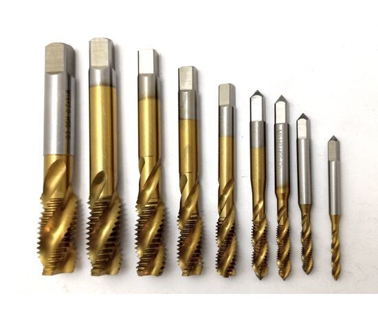 Набор машинных метчиков для глухих отверстий из 9 шт (М3х0,5 M4х0,7 Мх5х08 М6х1 М8х1,25 М10х1,5 М12х1,75 М14х2 М16х2)