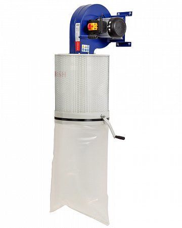 Корпус и крыльчатка выполнены из металла. К выходному патрубку корпуса крепится фильтр-картридж, что существенно улучшает степень очистки. Очистка фильтр-картриджа от отходов резания производится с помощью рукоятки. Вращая ее, лопасти во внутренней части фильтра приходят в движение и «стряхивают» пыль с гофрированной фильтрующей вставки. На нижнюю часть фильтра одевается и крепится с помощью зажима мешок-стружкосборник.